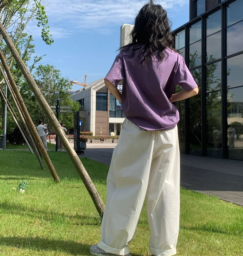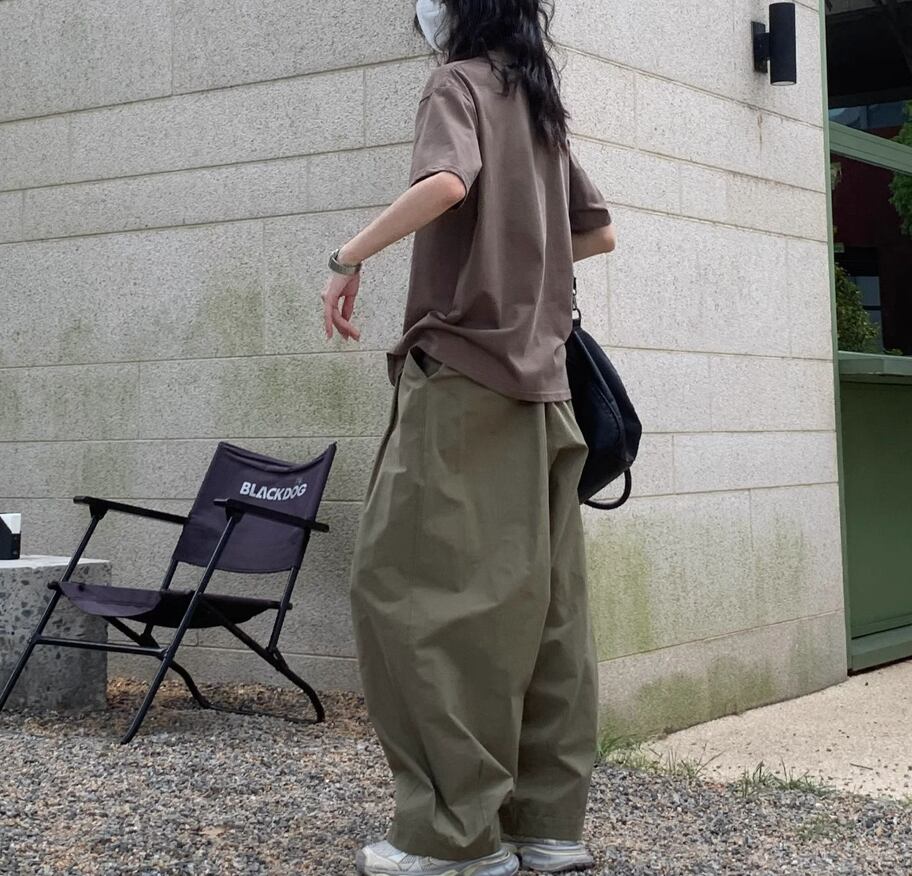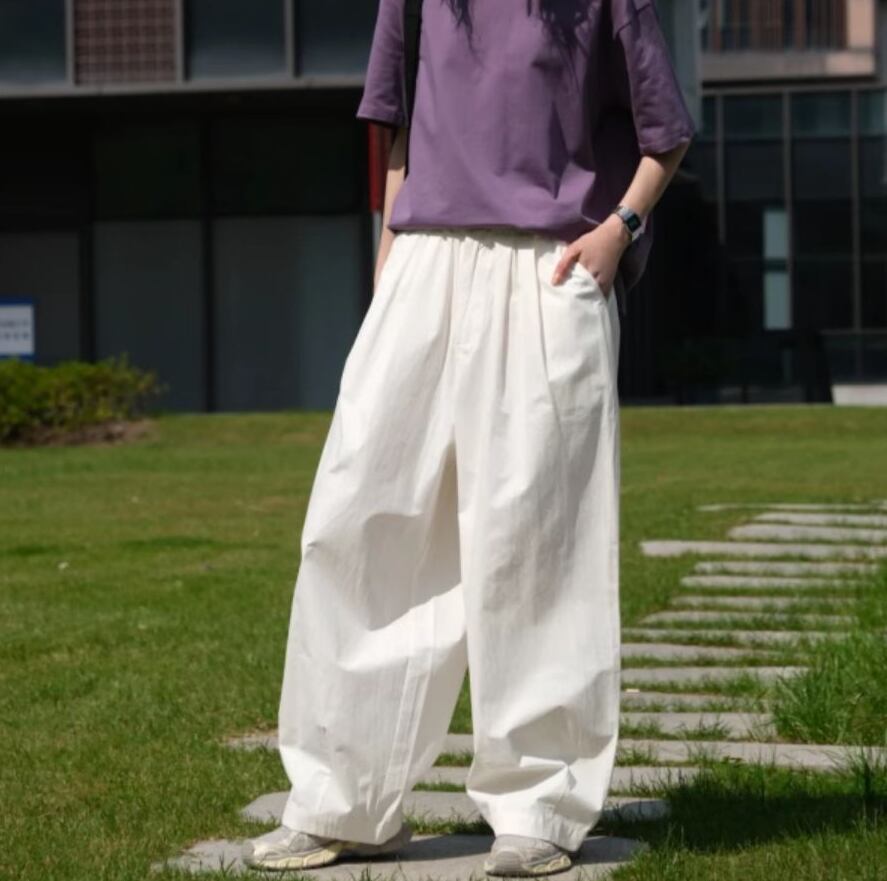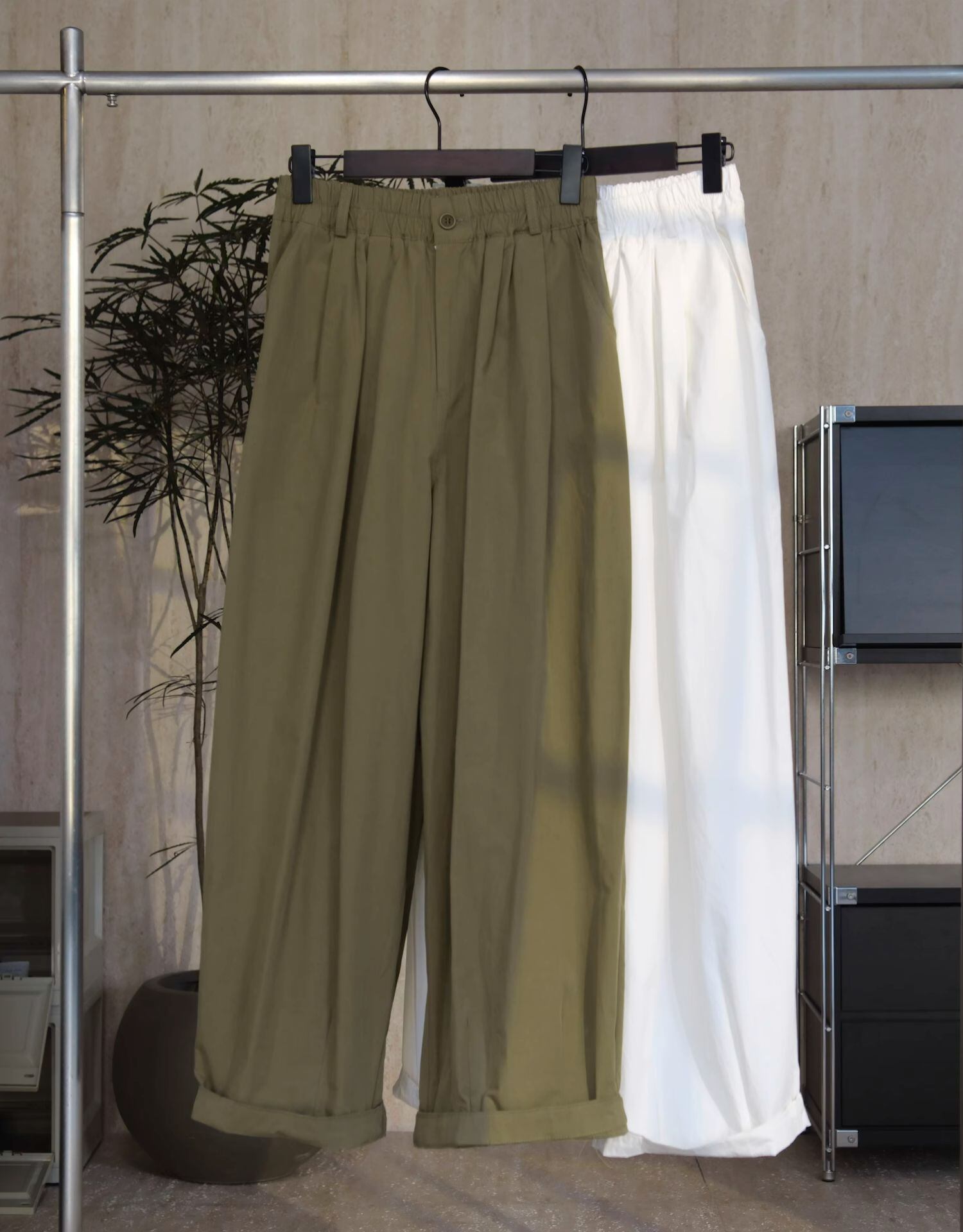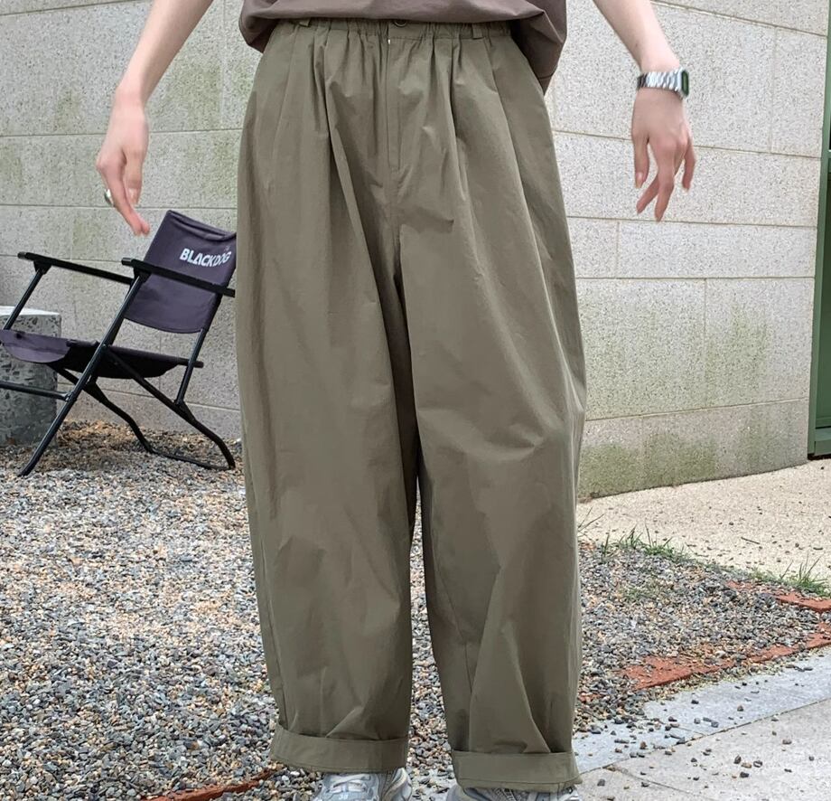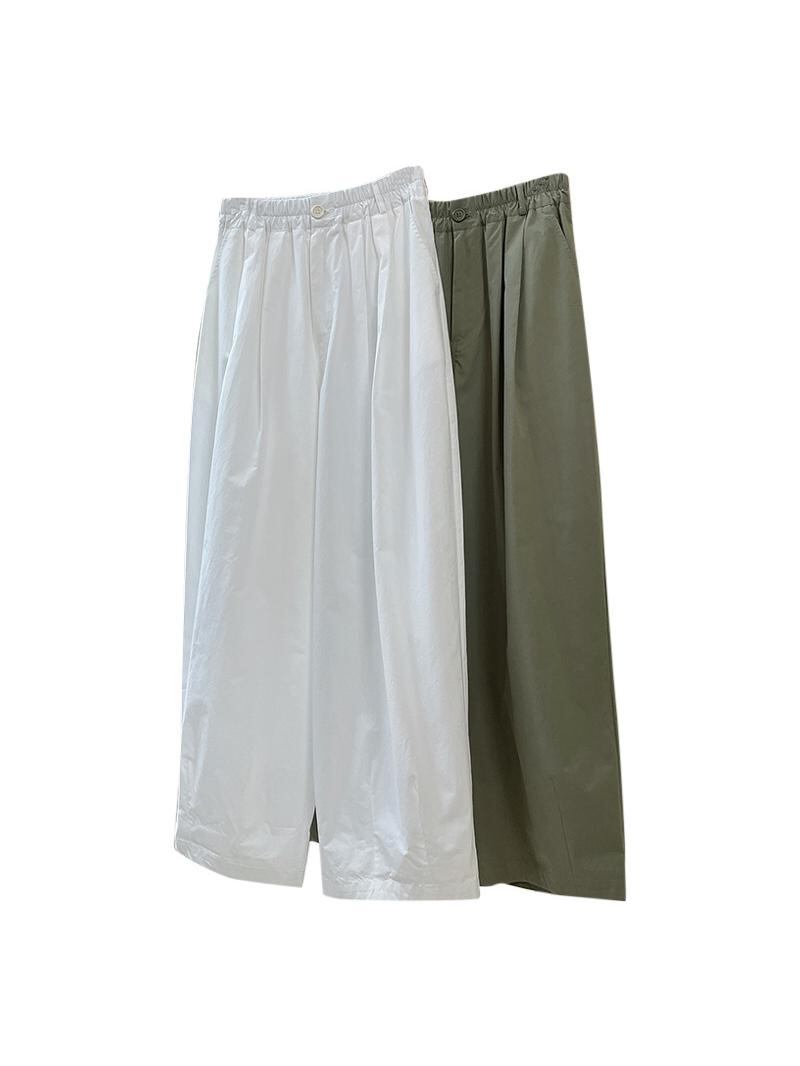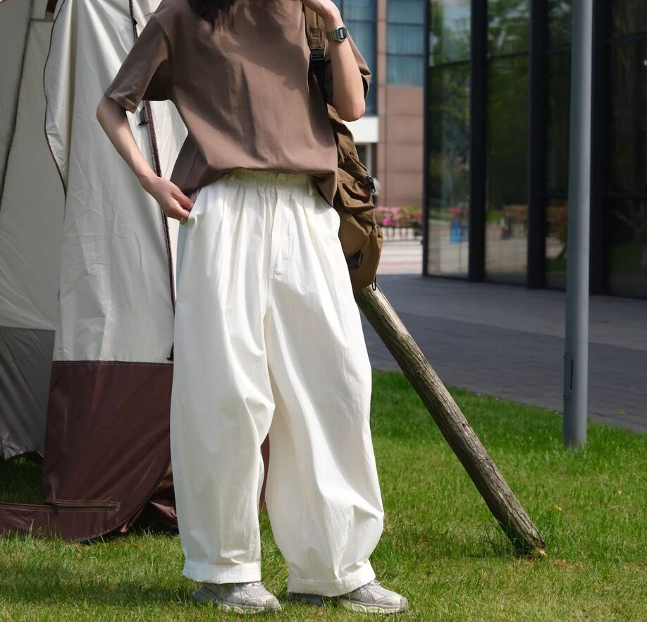 ゆったりバルーンシルエットのハイウエストワイドパンツ。ウエストはゴム入りでリラクシーな着こなしが楽しめます。通気性に優れた柔らかく肌触りのよいコットン生地で快適な着心地です。