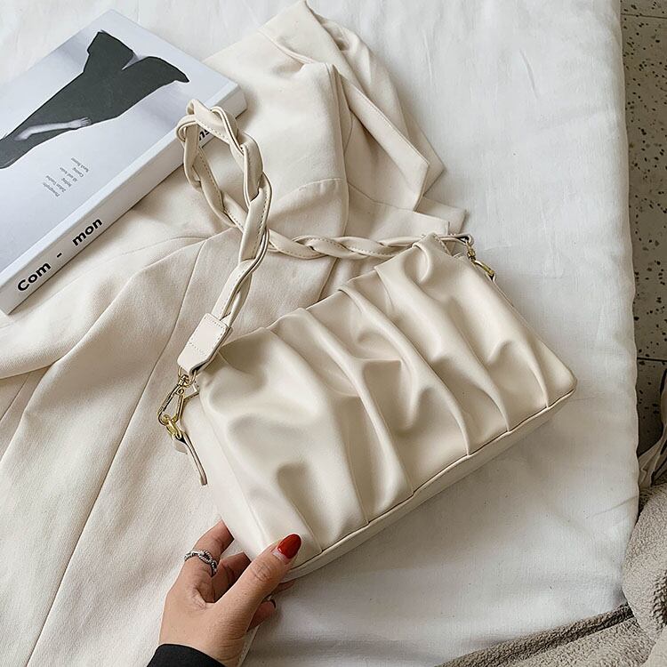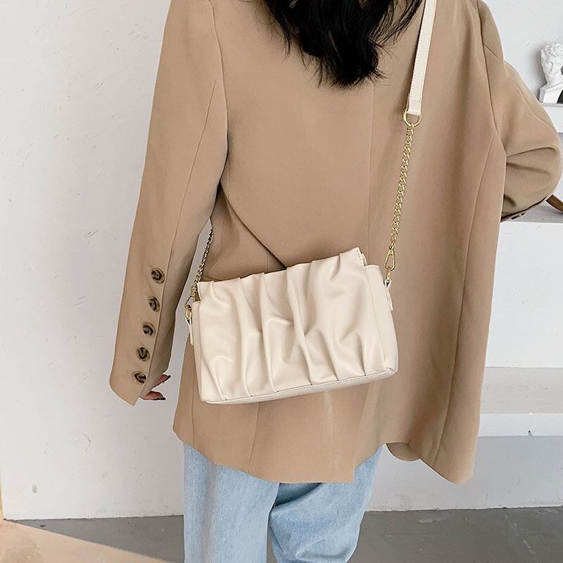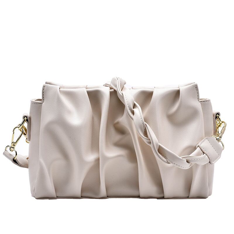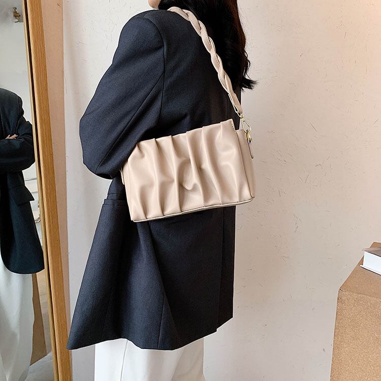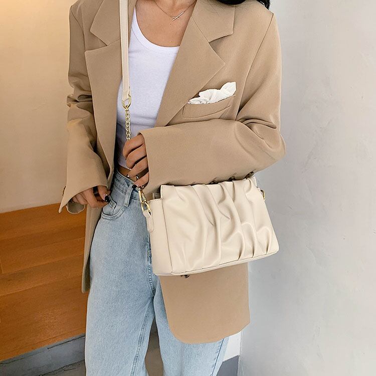 ギャザーデザインがアクセントのショルダーバッグ。シンプルながら華やかなギャザーデザインが大人の魅力を引き立てます。どんなスタイリングにも合わせやすい3色展開。