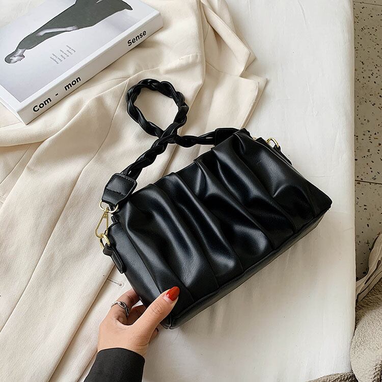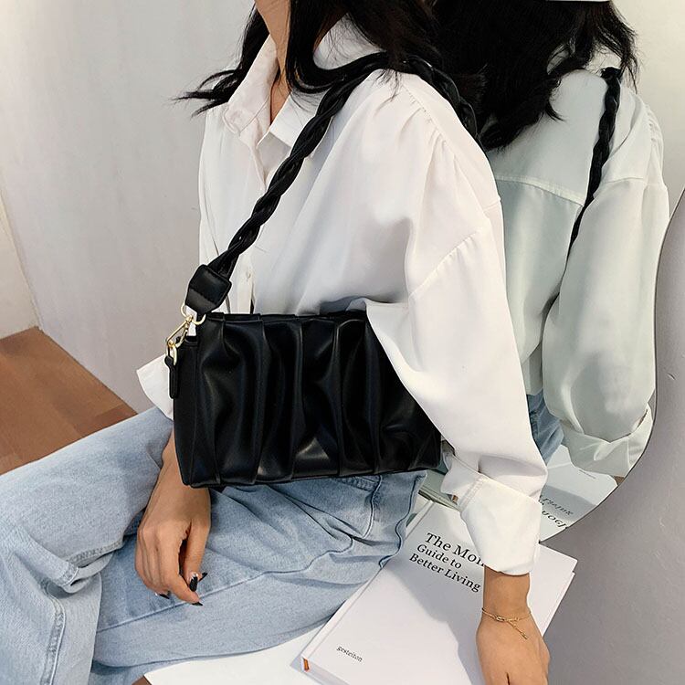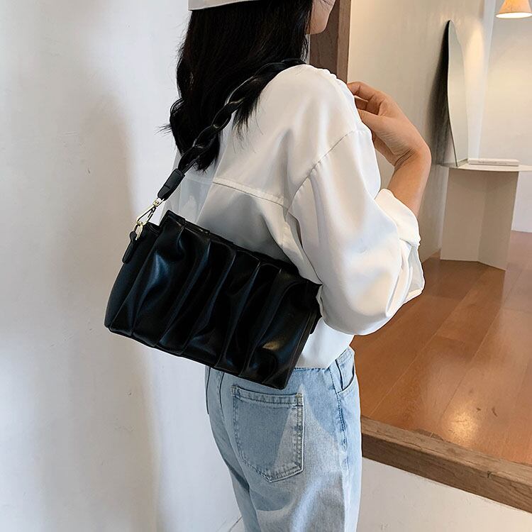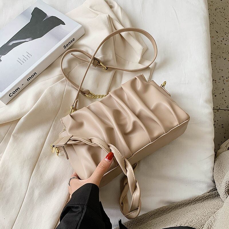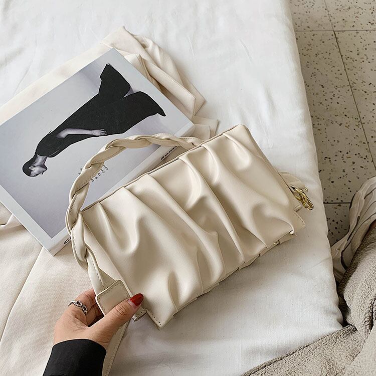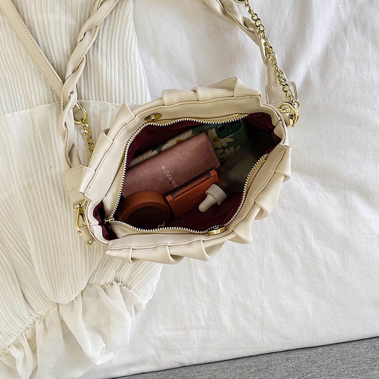 ギャザーデザインがアクセントのショルダーバッグ。シンプルながら華やかなギャザーデザインが大人の魅力を引き立てます。どんなスタイリングにも合わせやすい3色展開。