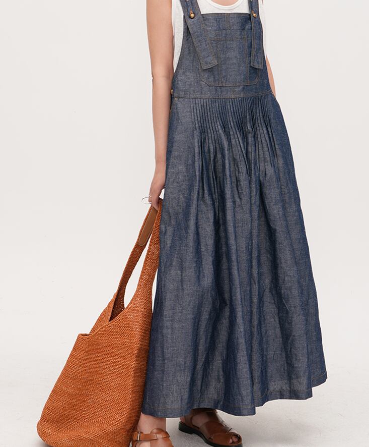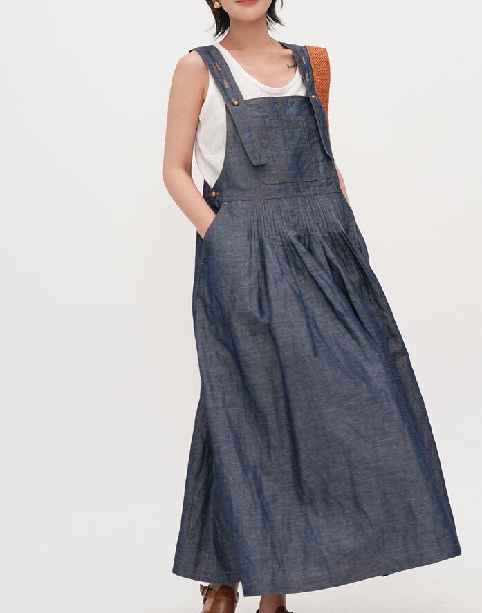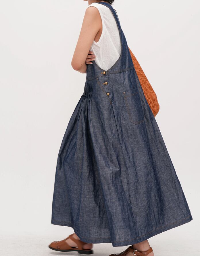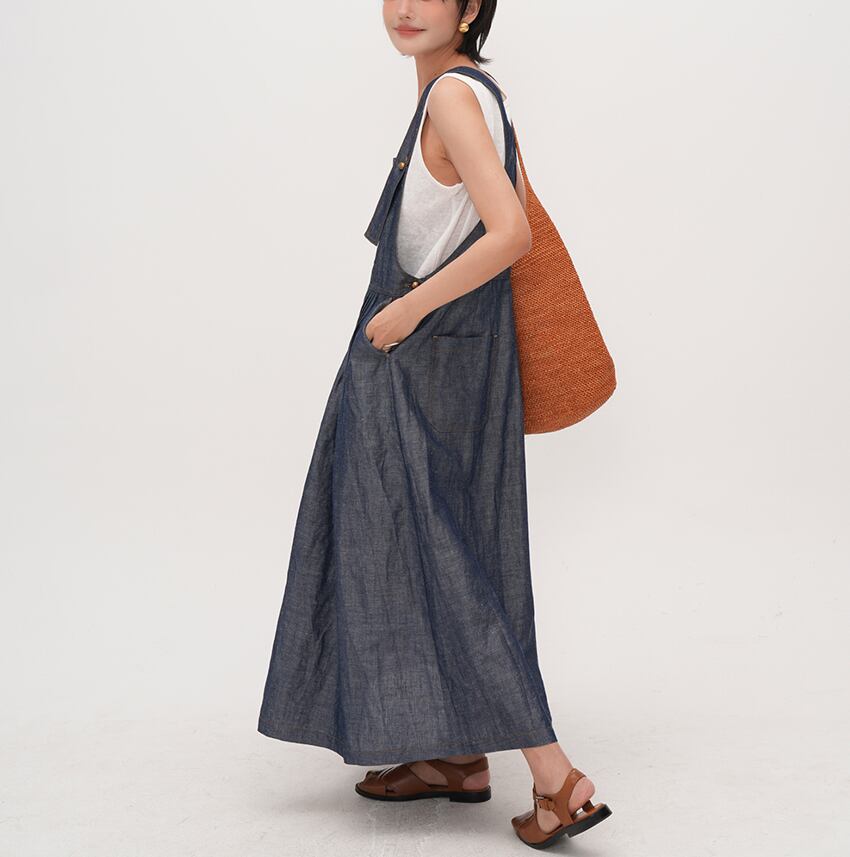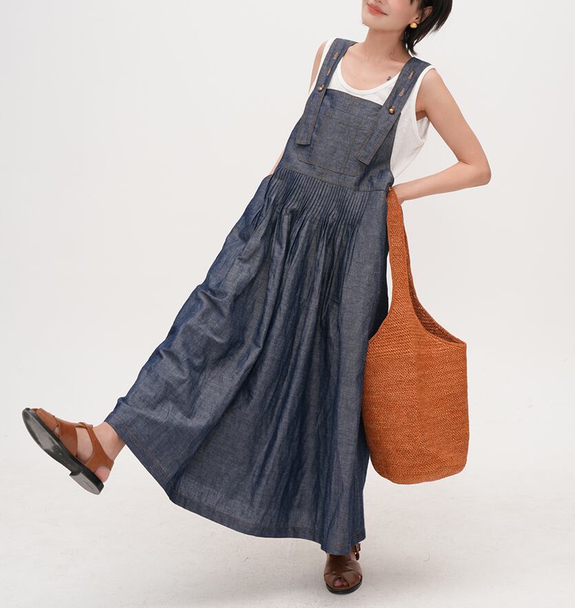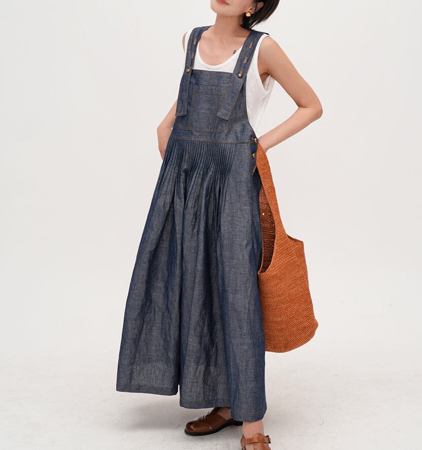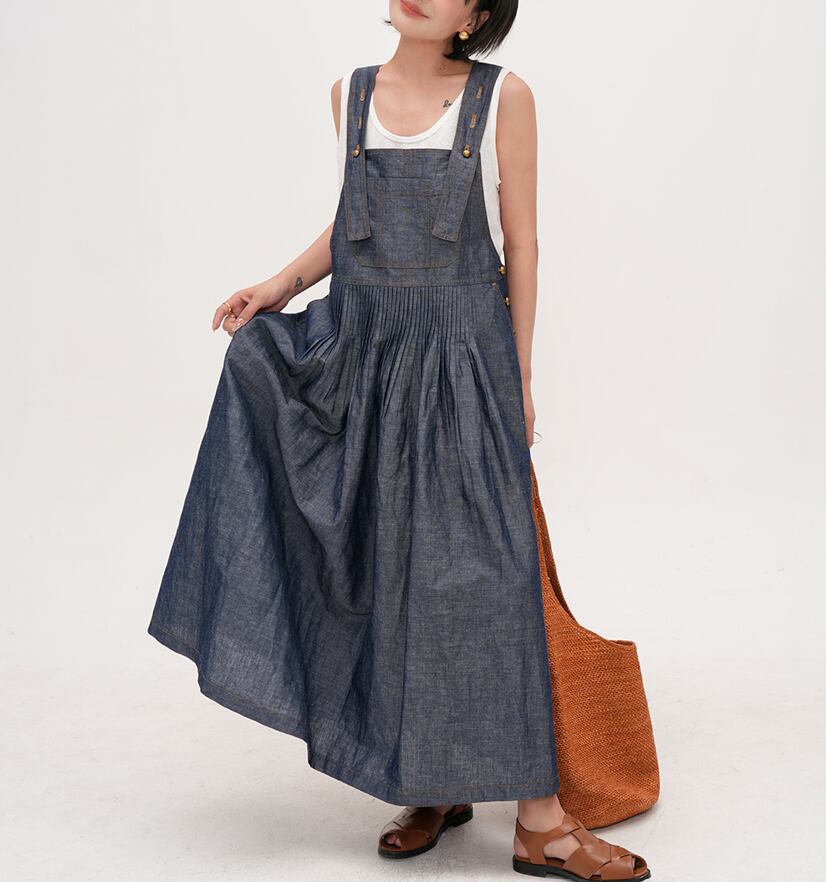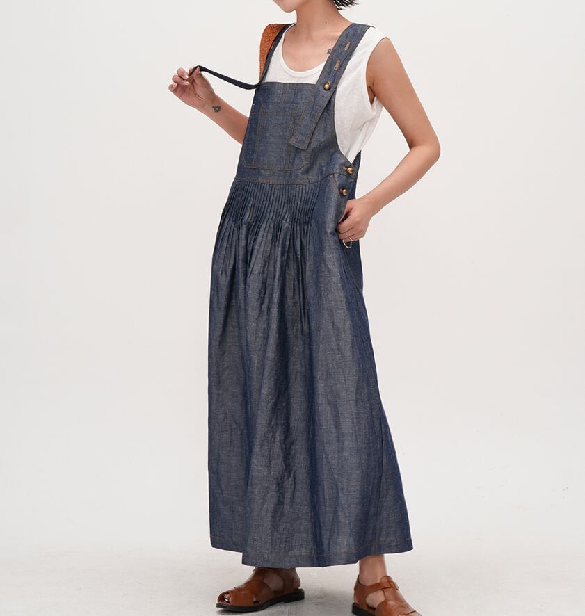 retro blue denim color suspender dress【2025071101】