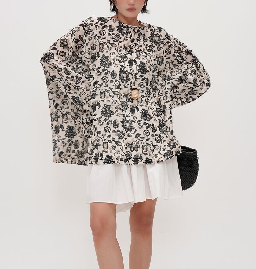 レトロなボタニカル柄が魅力のビックサイズシャツ。たっぷりの生地を使ったルーズなシルエットが大人の抜け感を演出。軽くて通気性の良いさらっとした生地です。