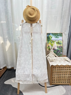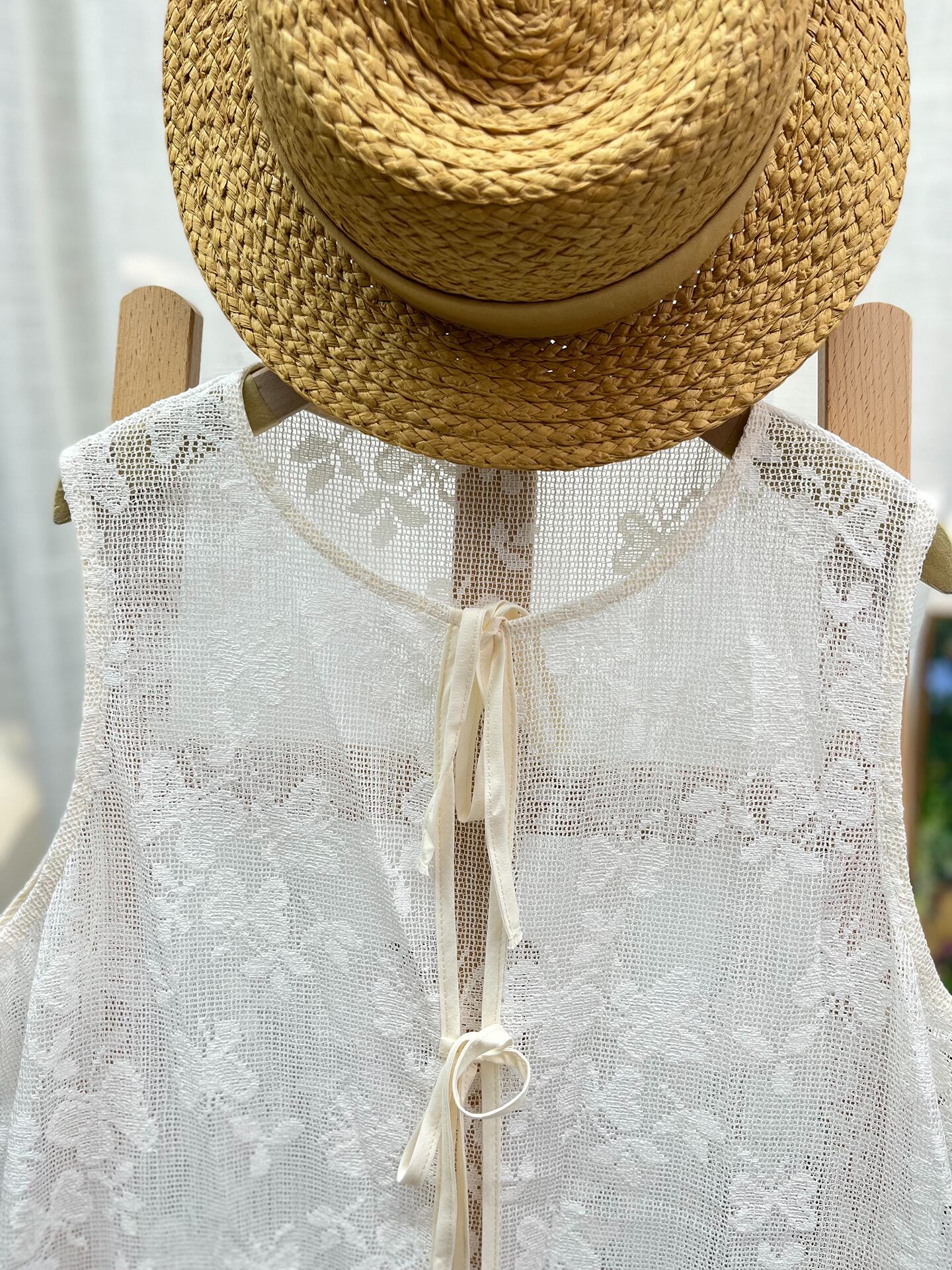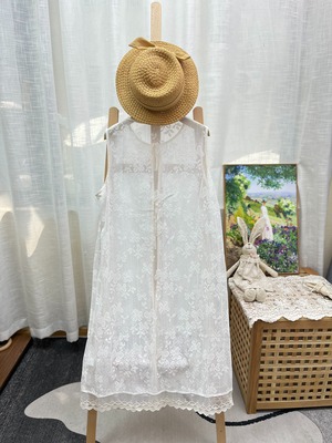 butterfly embroidered lace sleeveless long blouse【2025071901】