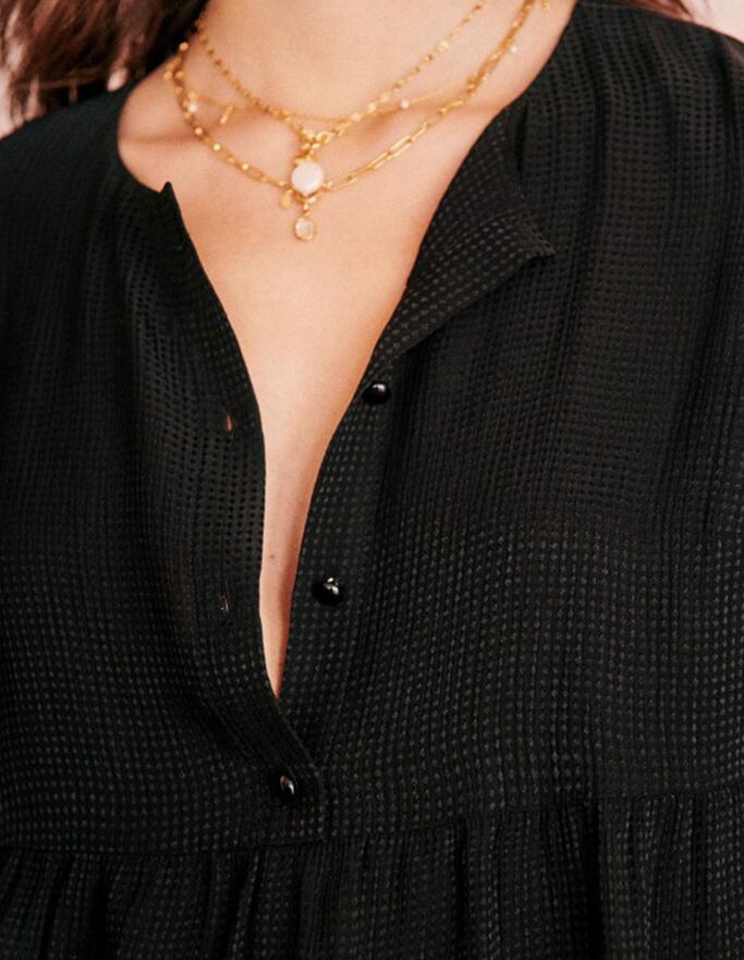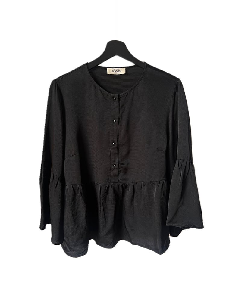 洗練されたエレガントな雰囲気を演出するフレアスリーブブラウス。ふんわり広がるフレアスリーブが優雅な女性らしい印象に。ディリーからお出かけまで様々なシーンで活躍する一枚。