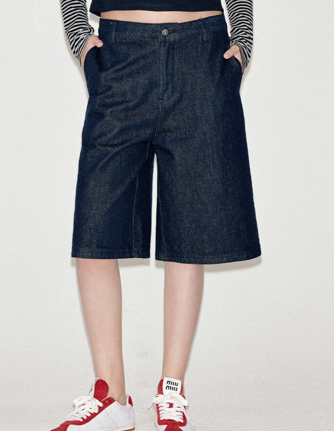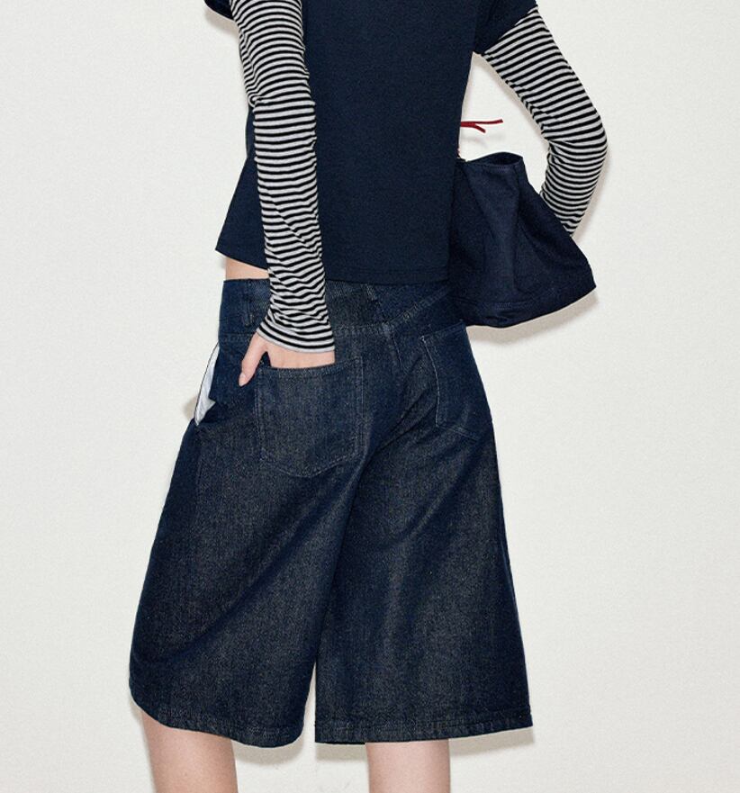 washed h-shaped mid-length jeans pants【2025073105】