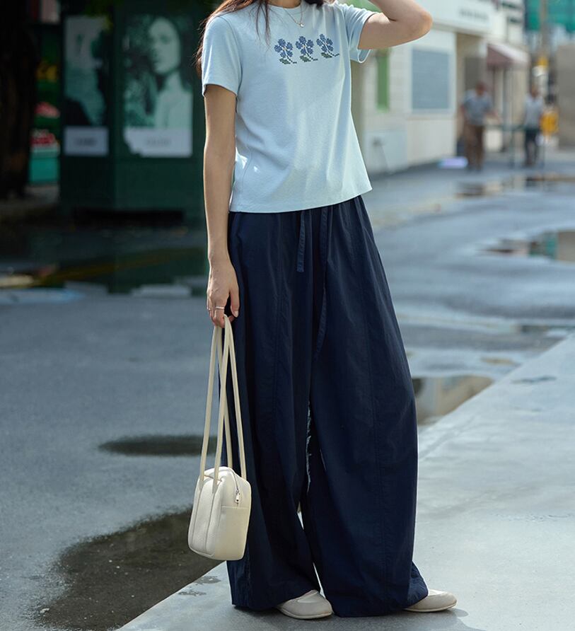 クールでトレンド感のあるゆったりとしたハイウエストバルーンパンツ。背面にデザイン性のあるステッチを施し、シンプルですっきりとしたクールなデザイン。収縮性のあるウエストゴムとひも付きでウエストを自由に調節できます。軽くて通気性に優れた綿混紡素材を使用。ややハリのある質感が立体的なシルエットを作りだします。