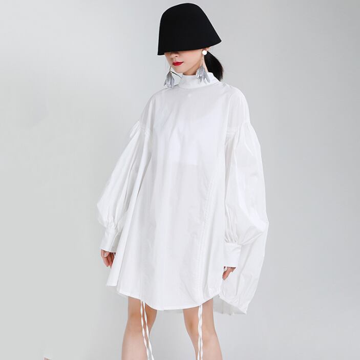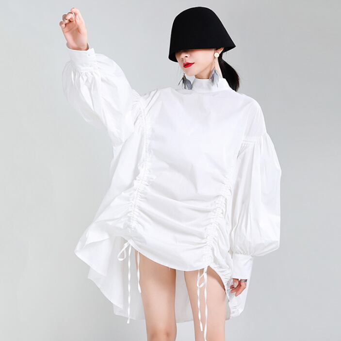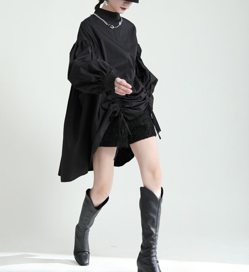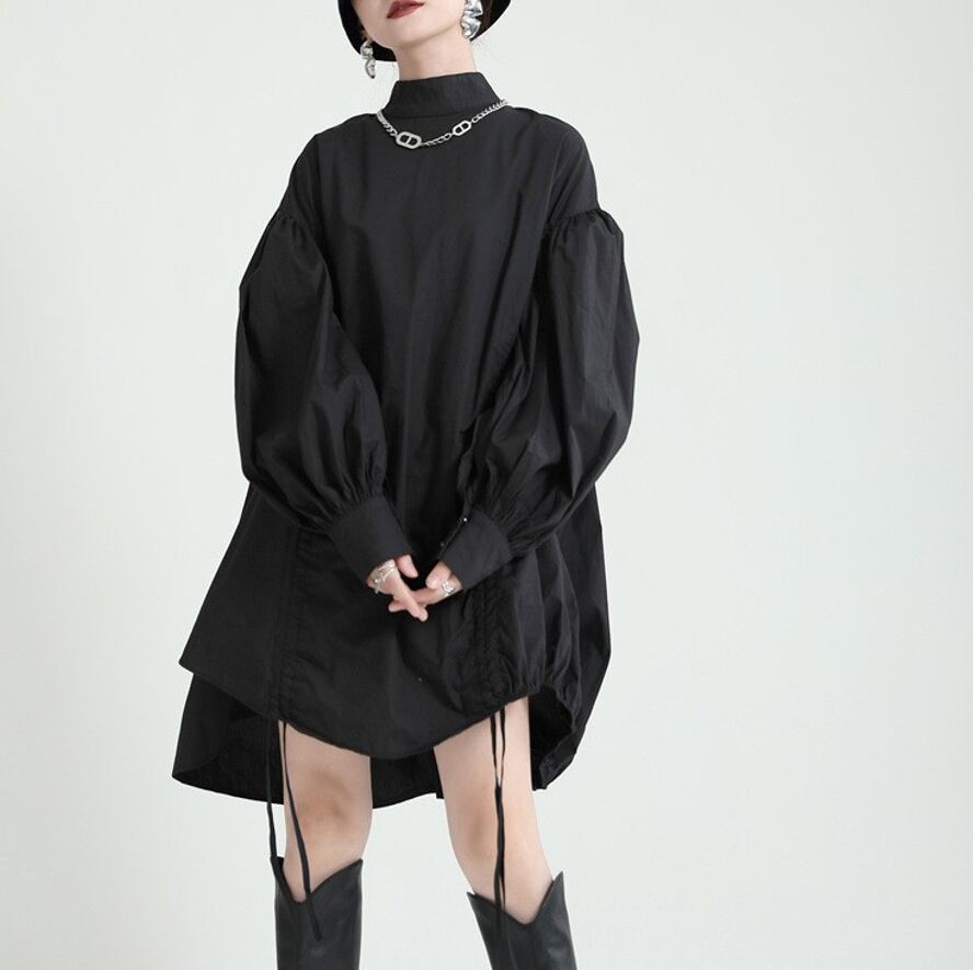 puff sleeve drawstring shirt dress 2colors【2025091001】
