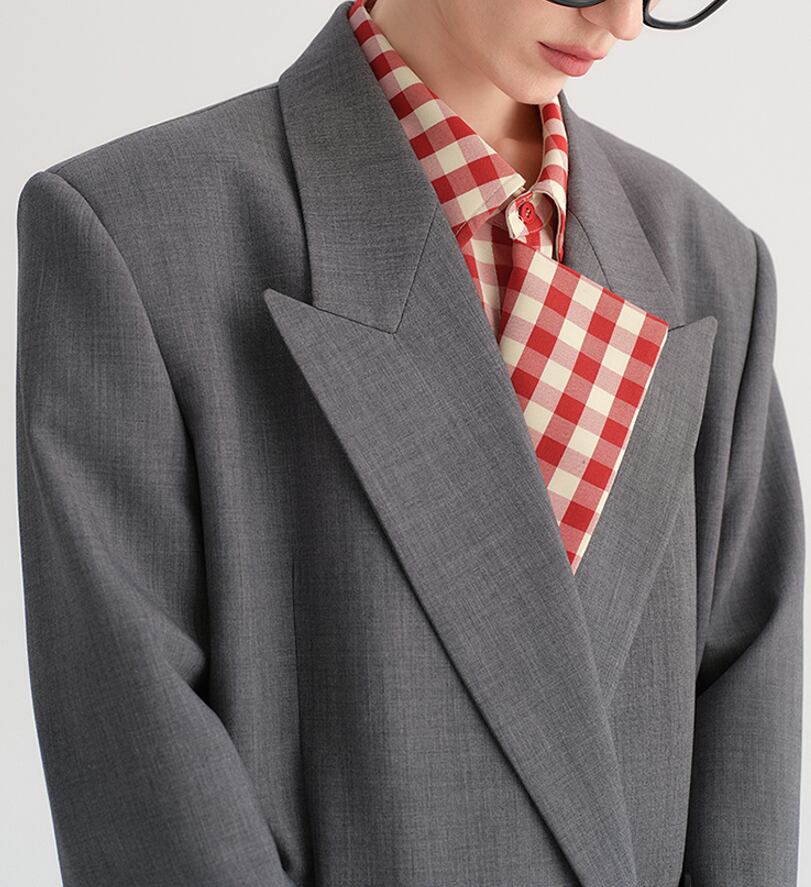 クラッシックでシンプルなゆったりとしたダブルブレステッドジャケット。テンセルアセテート混紡生地は快適で柔らかく、お手入れしやすいです。