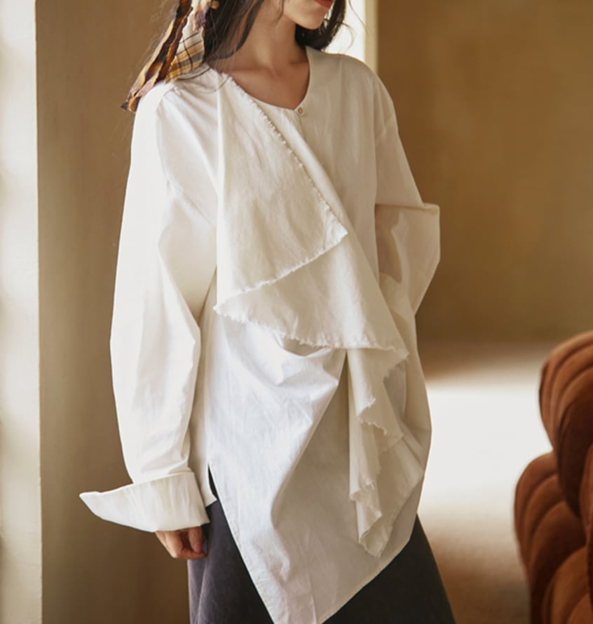 asymmetrical raw edge shirt【2025100906】