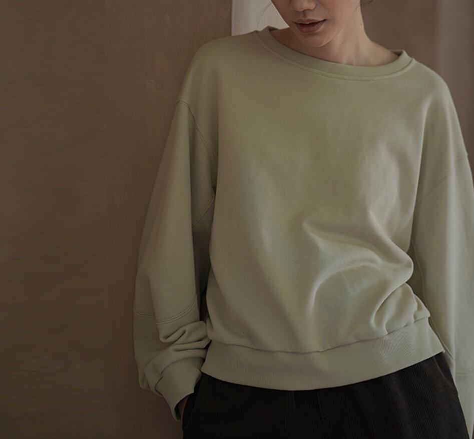 ゆったりした大人のリラックス感を演出するオーバーサイズのドロップショルダースエットシャツ。柔らかくシワになりにくく肌に触りの良いコットンとポリエステルの混紡生地です。