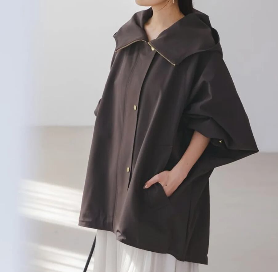 ビックシルエットのランタンスリーブウインドブレーカージャケット。ジーンズと合わせたスタイリッシュカジュアルスタイルやチュールやスカートと合わせたフレンチテイストなスタイルなど一枚で多様な着こなしが楽しめます。ゆったりとしたシルエットで体型を選ばず、着脱可能なフード付き。ディリーからおでかけまで、様々なシーンで活躍するアウター。