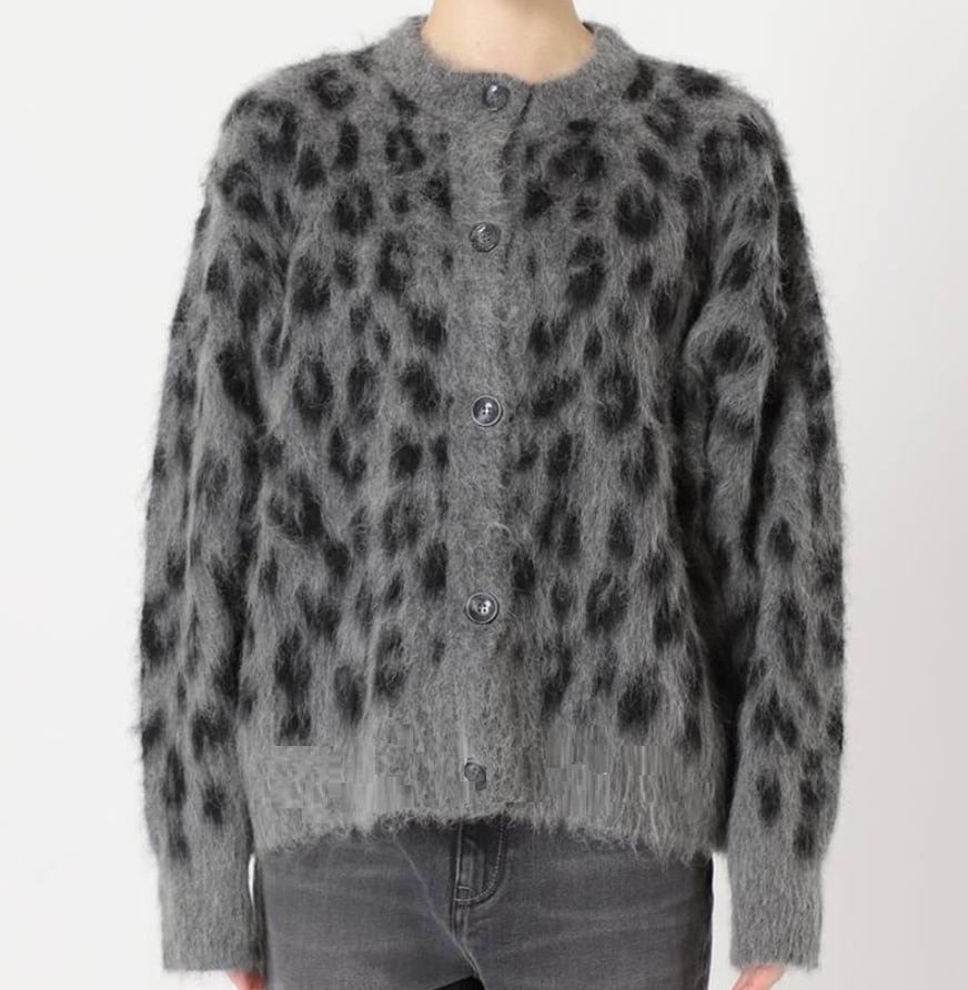 モノトーンカラーでクールな印象のレオパードニットジャケット。クルーネックですっきり上品に纏まる一枚。柔らかく滑らかな肌触りで暖かいモヘア混紡素材。旬のスエットパンツやロングスカートと合わせたスタイリングがおすすめ。