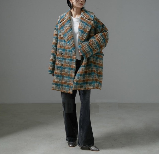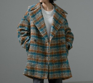 リラクシーな着心地のオーバーサイズチェック柄コート。大きめの衿と丸みのあるフォルムで大人の女性にも取り入れやすいデザインです。上質な毛並みのウール混紡生地を使用しイタリアンカラーのチェック柄で存在感のある一枚。重すぎずさらっと軽さのある着心地です。