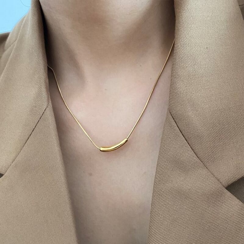 さりげないカーブモチーフをあしらった、スネークチェーンネックレス。シンプルなデザインは、ゴールド・シルバーともにコーディネートを選ばずお使いいただけます。長すぎず短すぎないネックレスで、首まわりを印象的に演出。さらりと付けるだけでこなれ感が出るアイテムです。
