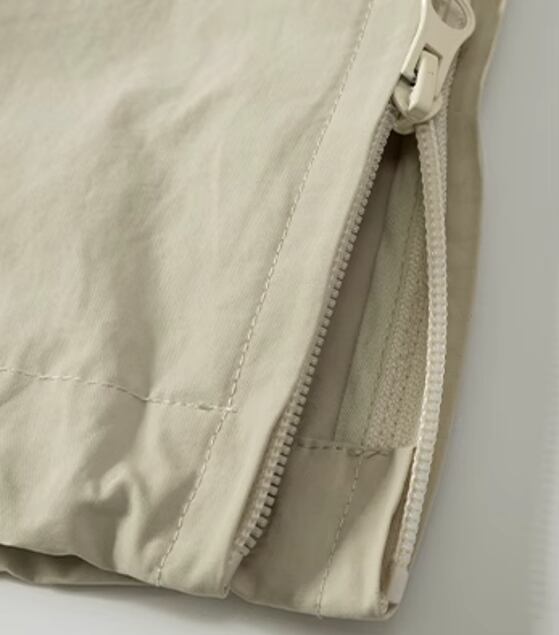 肌に優しいさらっとした生地で通気性がよく軽くて快適な着心地。サイドジッパーをおろせばスリットのようなアレンジも楽しむことができ、ドローコードで裾を絞るアレンジも可能です。