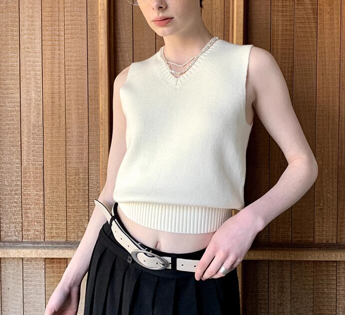 solid color v-neck knit vest 2colors【2024032501】