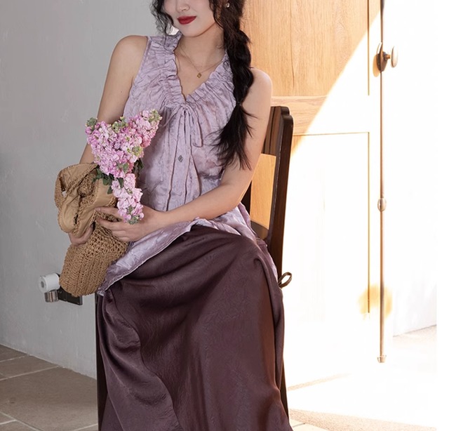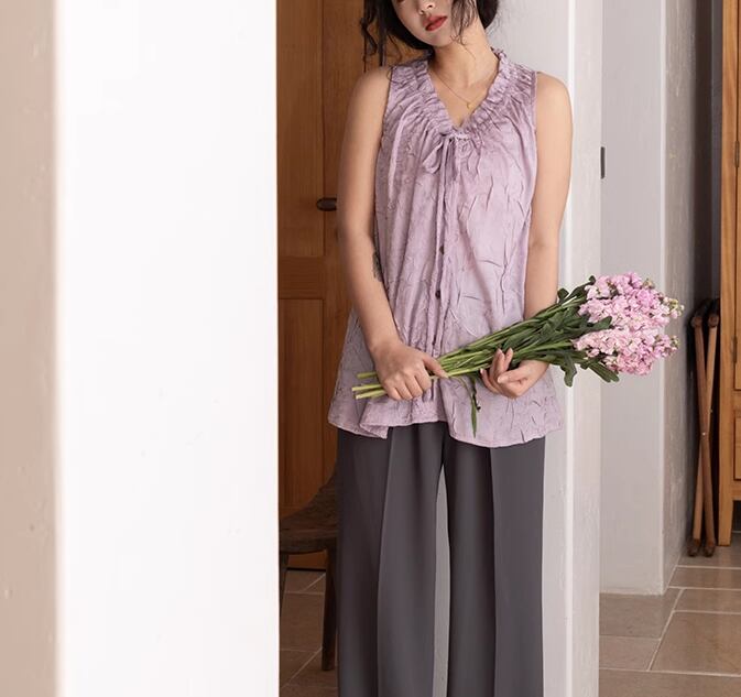 :::::::::::::::::::::::: 【お届けについて】 当ショップの商品は海外より取り寄せ・発送となる為 ご入金から2〜4週間前後でお届けいたします。 【BASE算出 発送までの目安】平均4〜13日 :::::::::::::::::::::::: 胸元の絞ったリボンがキュートなノースリーブトップス。 上質なプリーツ加工を施した生地にすっきりとしたシルエットで、V字ネックが鎖骨のラインを綺麗に見せてくれます。カーディガンやジャケットのインナーとしてレディライクに着こなせる一枚。 ◆Color: パープル ブラウン ◆size(cm):XS,S,M,L XS 着丈70cm / 胸囲117cm / 裾周り177cm S 着丈74cm / 胸囲119cm / 裾周り179cm M 着丈76cm / 胸囲123cm / 裾周り183cm L 着丈78cm / 胸囲127cm / 裾周り187cm ◆model info: 162cm 47lg BWH 82/63/86 サイズS着用 ◆Material ポリエステル100% 【商品管理番号】2024040402 ¨¨¨¨¨¨¨¨¨¨¨¨¨¨¨¨¨¨¨¨¨¨¨¨¨¨¨¨¨¨¨¨¨¨¨¨¨¨¨¨¨¨¨¨¨ 【注意事項】 ・商品お届けまでに3〜4週間程頂きます。 ・海外在庫のため在庫情報に時差が生じますため 在庫切れや生産中止、生産に遅れがある場合は、受注後でも キャンセルさせていただく恐れがございます。 予めご了承ください。 ・イメージ違い・サイズ違いによる交換はいたしかねます。 ・スマートフォンやパソコンの液晶の違いにより、 商品の色味に若干の差が発生する場合がございます。 ・発送時期によりデザイン仕様(素材や細部)の変更が ある場合がございます。 こちらの1と2をご確認ください。 1:ショップ説明 https://www.jardin-select.com/about 2:よくいただくご質問Q&A https://www.jardin-select.com/blog/2020/09/15/083458 ¨¨¨¨¨¨¨¨¨¨¨¨¨¨¨¨¨¨¨¨¨¨¨¨¨¨¨¨¨¨¨¨¨¨¨¨¨¨¨¨¨¨¨¨¨ 【お支払い方法】 以下の各種お支払い方法をお選びいただけます。 ・BASEかんたん決済 ・クレジットカード決済(VISA/Master/JCB/AMERICAN EXPRESS) ・キャリア決済 ・銀行振込 ・コンビニ決済・Pay-easy 皆さまに喜んでいただけるように誠心誠意対応して参ります。最後までお取り引きどうぞ宜しくお願いいたします。