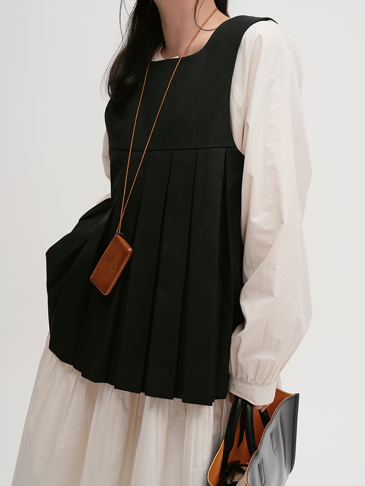 pleated design split vest【2024082501】