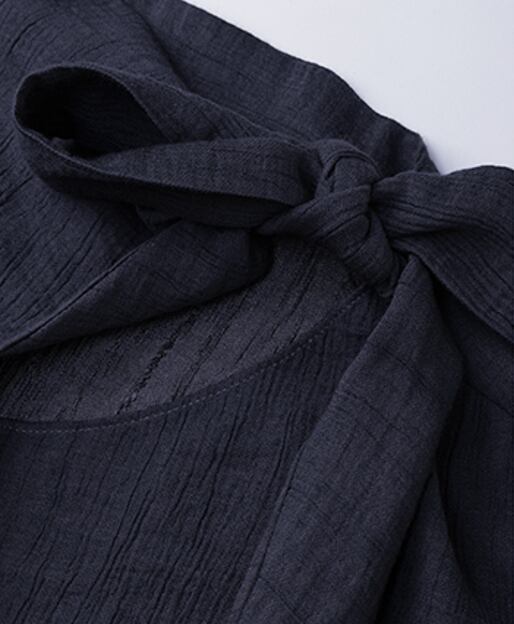 ロングボウタイが印象的なシンプルなルーズシャツ。