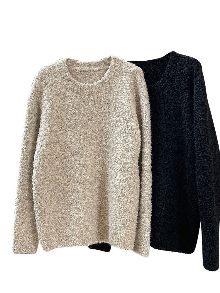 ふんわり柔らかな感触のウール混ニットセーター。シンプルでゆったりとした着心地で、こなれた大人の雰囲気を演出します。
